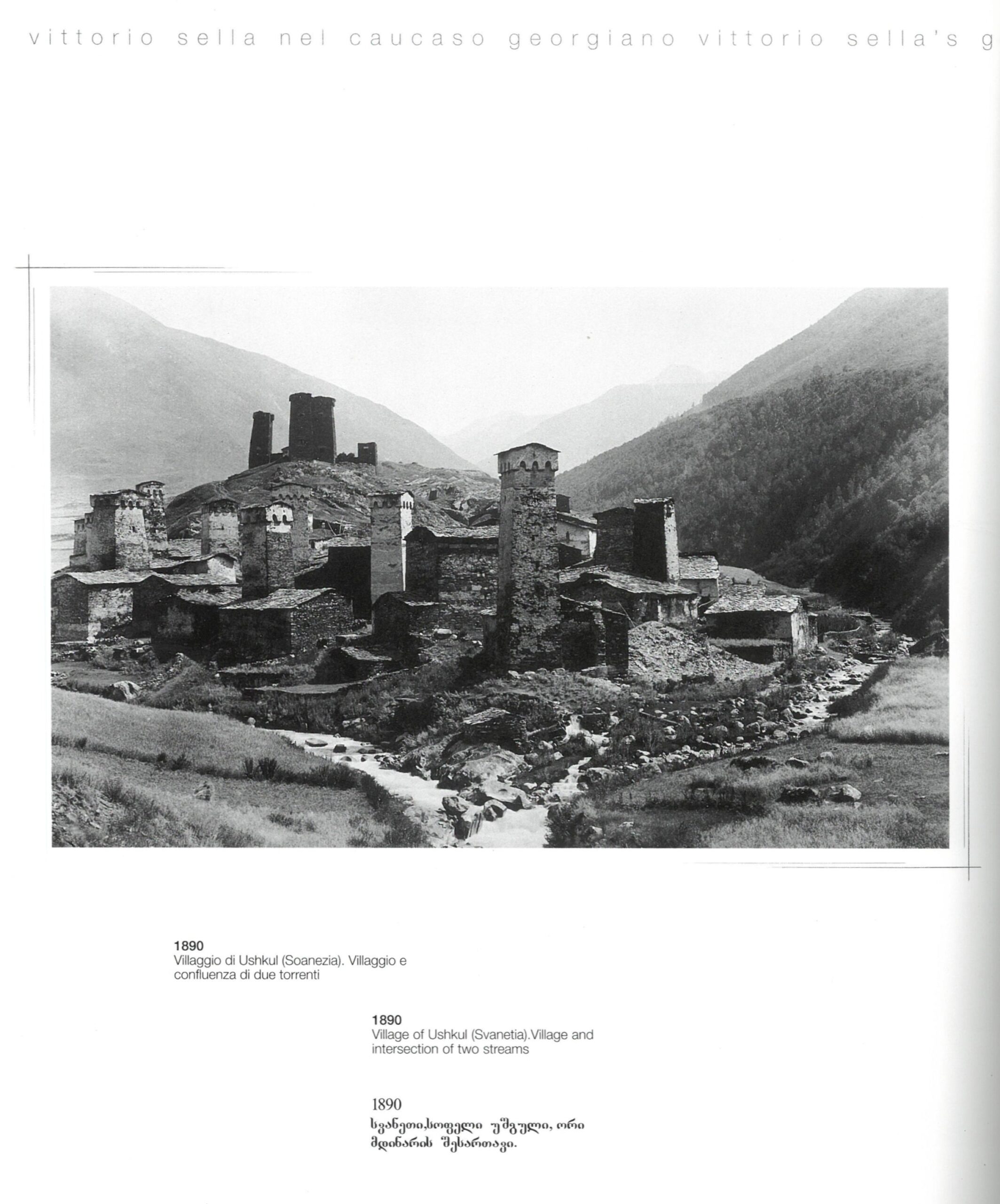 Vittorio fu alpinista e fotografo, organizzatore di importanti spedizioni lungo tutto l’arco della vita. Il libro in questione documenta la sua visita nel Caucaso quando aveva circa 30 anni. In particolare le sue fotografie raffigurano una regione piuttosto ristretta, quella che veniva allora chiamata in italiano Soanezia, in georgiano è Svaneti. Si tratta sostanzialmente della valle del fiume Enguri (o Inguri), celebre anche per una diga altissima costruita nel periodo sovietico. É un microcosmo magico fatto di paesi formati da decine di case torri, da chiese affrescate nel medioevo, con, sullo sfondo, alcune delle vette più elevate del Caucaso, anche superiori ai 5.000 metri. La valle delle torri, si potrebbe chiamarla così, per questa sua caratteristica peculiare, è lunga più di 50 chilometri, dai 1000 ai 2200 m. slm. Sella documenta in modo ammirevole paesaggi naturali, architetture e persone, moltissime persone, che abitavano e in parte abitano ancora i più alti insediamenti umani stabili d’Europa.