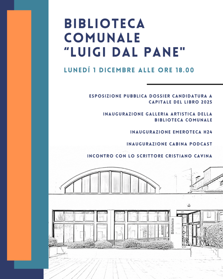 Lunedì 1 dicembre 2025, alle ore 18.00, presso la Biblioteca Comunale Luigi Dal Pane, presentazione del dossier di candidatura di Castel Bolognese a Capitale del Libro 2025